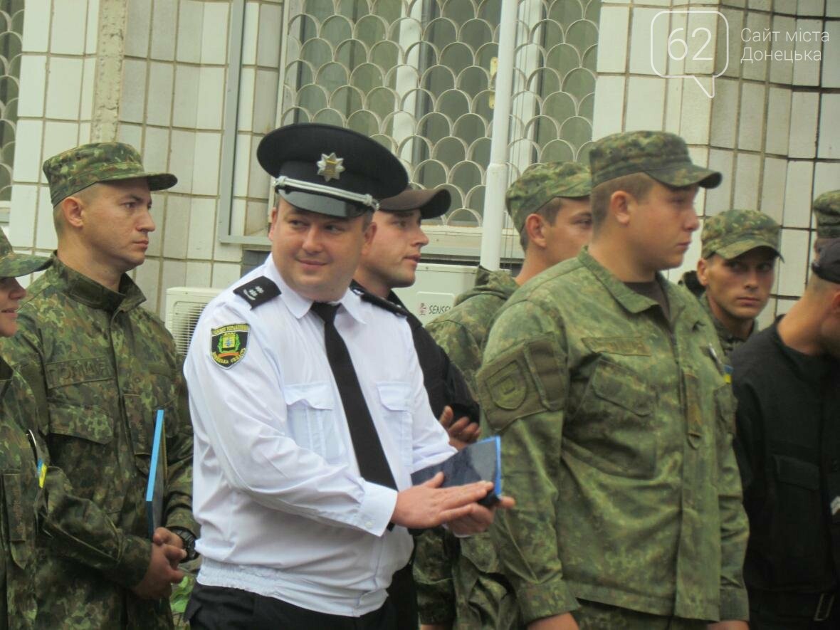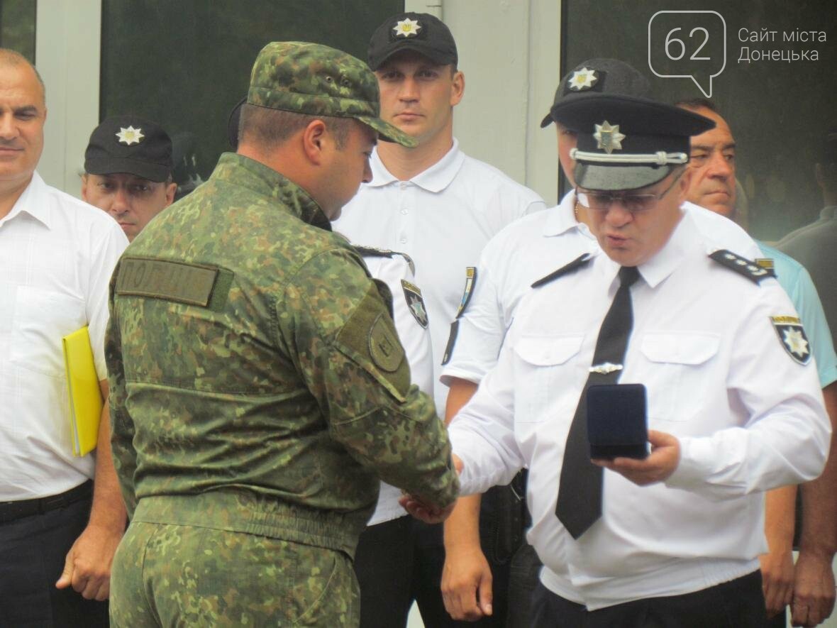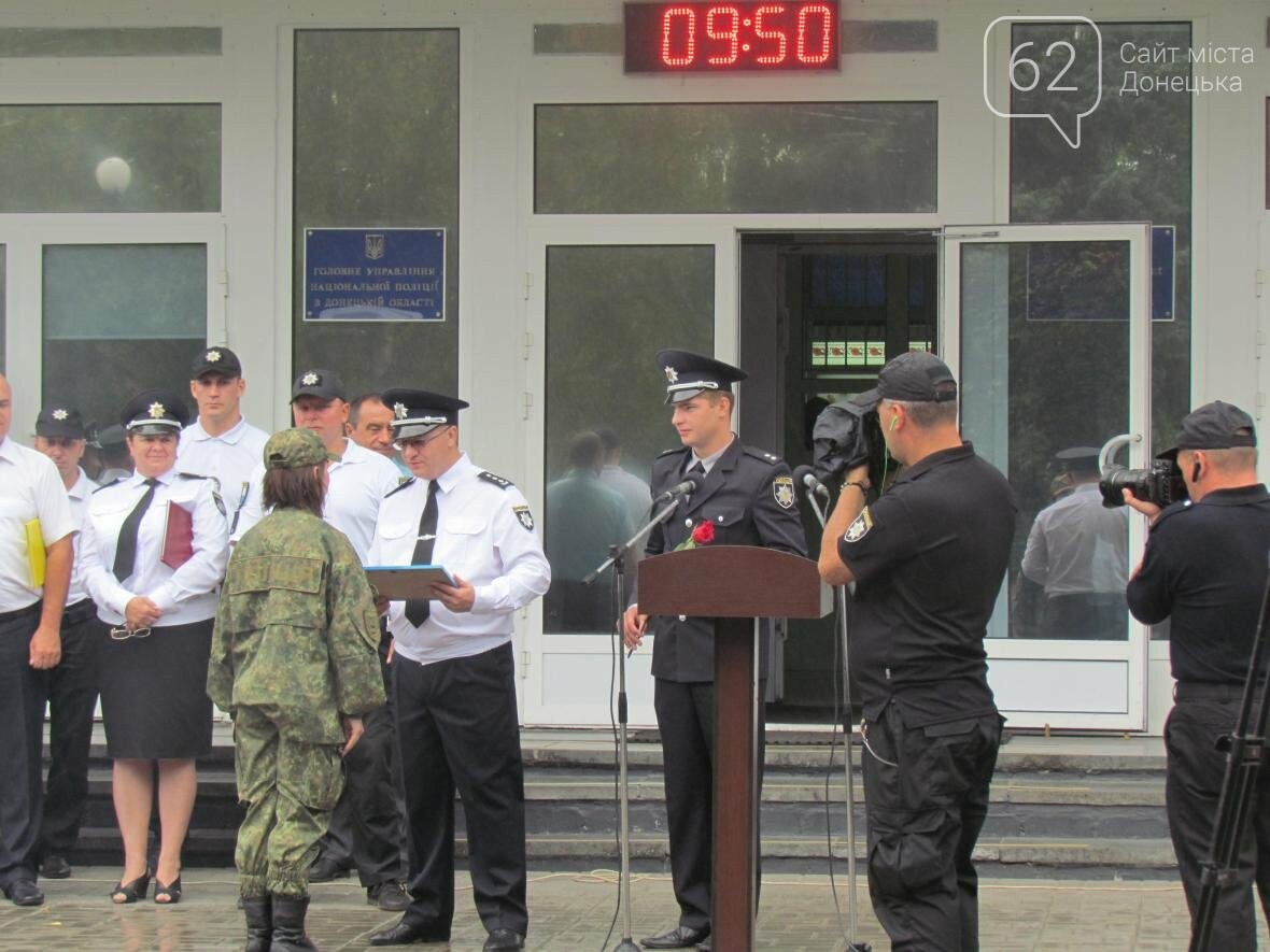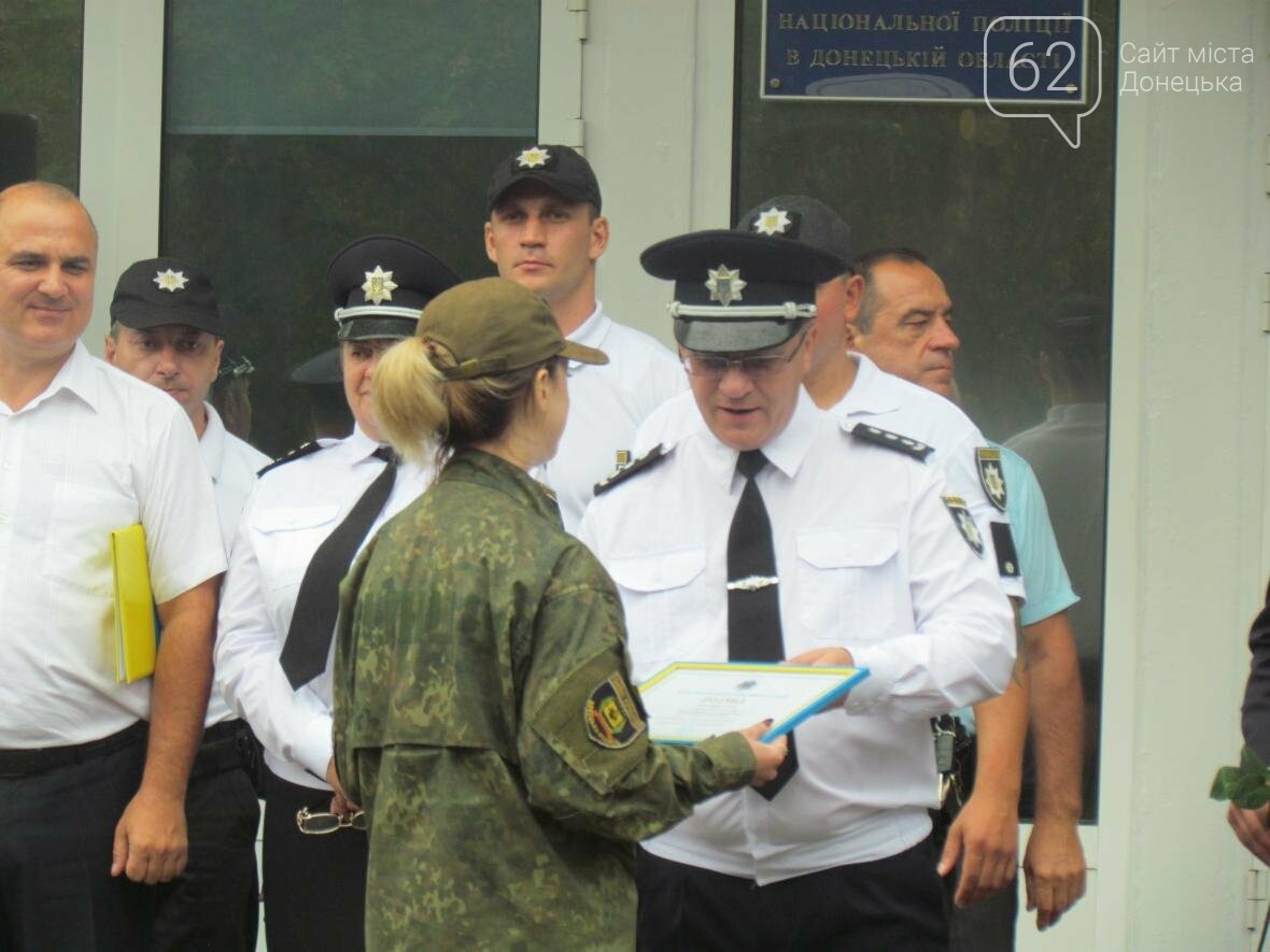 Празднование началось с построения личного состава полицейских Донецкой области и приданных сил. В небо под звуки Гимна взмыл государственный сине-желтый флаг. Обращаясь к полицейским, начальник полиции Донецкой области Виталий Невгад отметил, что независимость Украины является результатом борьбы целых поколений патриотов. Основной целью полиции он обозначил сохранность свободы, целостность страны и защита ее граждан. Также Невгад отметил возрастающий уровень доверия граждан к правоохранителям.