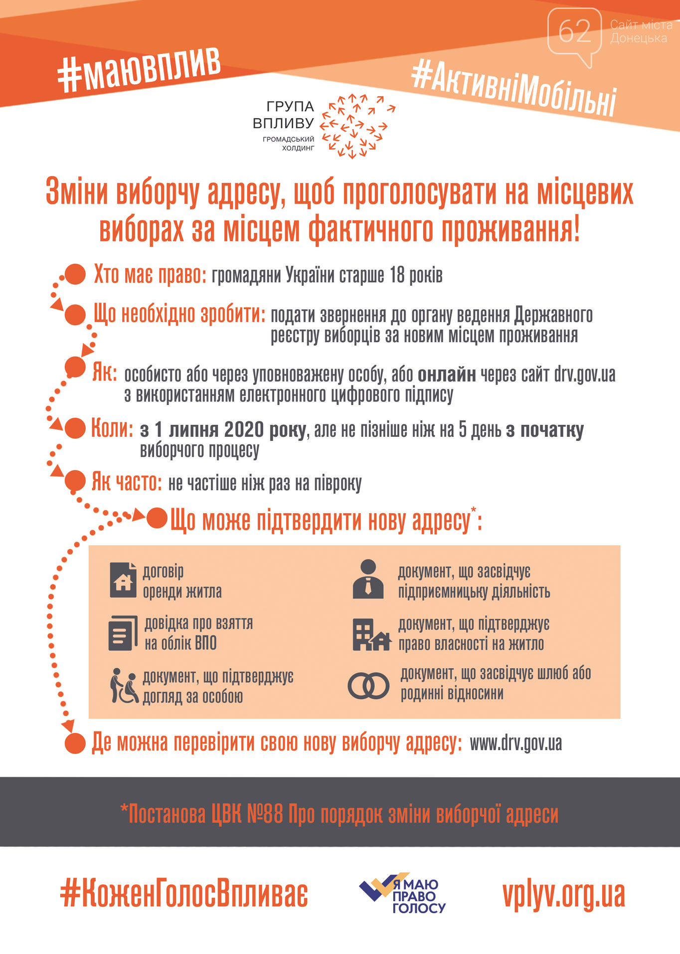 Постановление вступает в силу с 1 июля 2020 года. Избиратели, которые намерены проголосовать не по месту официальной регистрации, смогут изменить избирательный адрес, указав другой, фактический адрес проживания и выбирать местную власть в тех громадах, где они действительно проживают. Это особенно актуально для внутренне перемещенных лиц и трудовых мигрантов (в пределах страны).