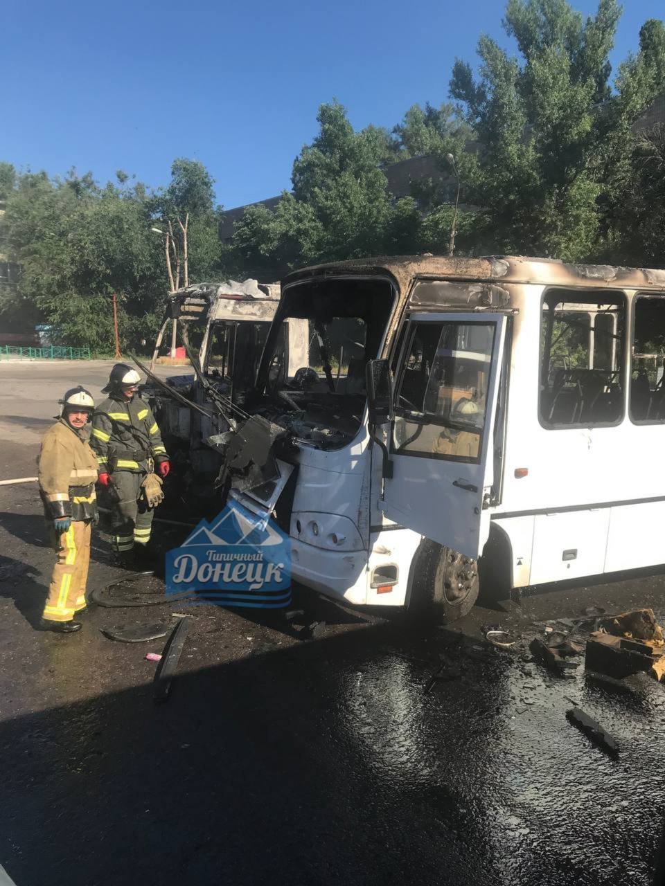 У центрі Донецька на автостанції згоріли два автобуси, - ФОТО
