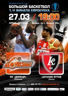 Дорогие болельщики БК «Донецк» и любители баскетбола! Приглашаем Вас на заключительную домашнюю игру Четвертьфинала Еврокубка, которая пройдёт с сильнейшей командой Литвы, Баскетбольным Клубом «Лиетувос Ритас».