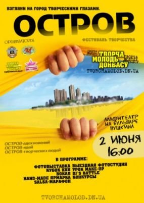 Донецкая областная молодежная общественная организация "Творческая молодежь Донбасса" приглашает всех творческих людей Донбасса принять участие и поселиться на острове Творческой молодежи!