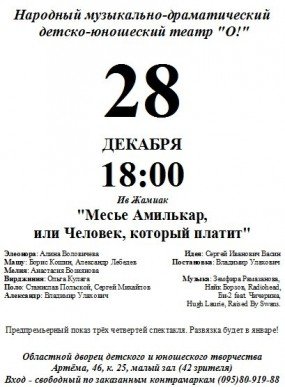 Итак, учебная постановка французского комедиографа Ива Жамиака "Месье Амилькар, или Человек, который платит"