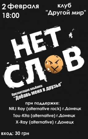 Группа Нет слов (ex-Нет С'love) Днепропетровск, приглашает Вас на презентацию своего альбома  "Добавь меня в друзья" 2012г.