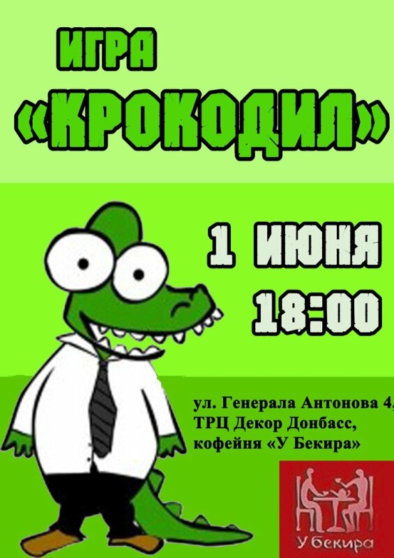 В эту субботу кофейня "У Бекира" превращается в островок детской непосредственности и позитива благодаря игре "Крокодил" (она же "Шарады", "Показуха" и т.п.)