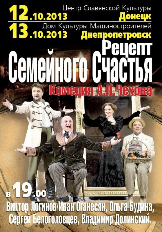 Лёгкий, живой, искристый юмор в исполнении звёздного состава - вот что делает спектакль любимым как среди опытных театралов, так и среди людей, любящих легко и весело провести время. Здесь «Доктор» А. П. Чехов выписывает Вам свой «Рецепт семейного счастья».