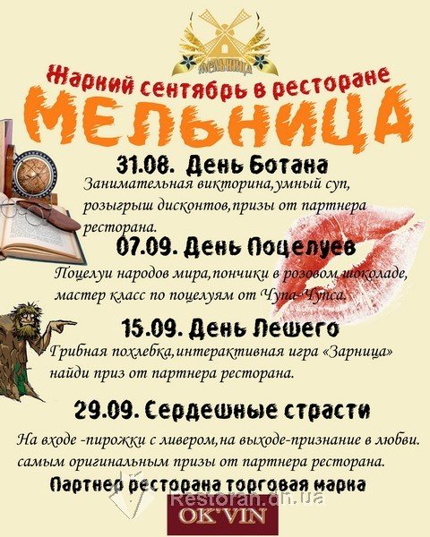 в этот день Вас ждет грибная похлебка, интерактивная игра "Зарница", которая поможет найти приз от партнера ресторана.