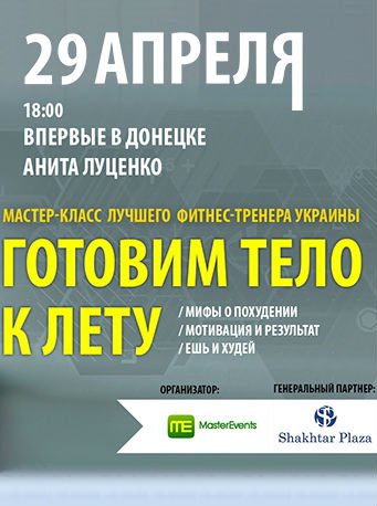 Лучший фитнес-тренер Украины, эксперт в области правильного питания и здорового образа жизни – Анита Луценко, проведет в столице Донбасса открытый мастер-класс «Готовим тело к лету».