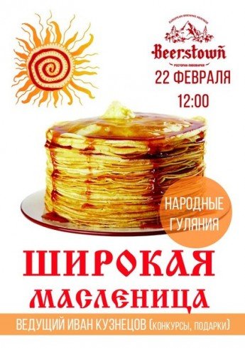 Для вас мы приготовили вкусные угощения: блины с карамельно-сливочным соусом и ароматным чаем! На протяжении всего гуляния вас будут развлекать скоморохи, музыканты и Рыцарь Мартин! Апогеем праздника станет сожжение чучела и проводы зимы!