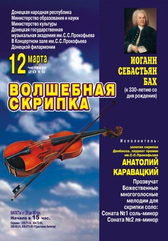Исполнитель золотая скрипка Донбасса лауреат премии им. С. С. Прокофьева Анатолий Каравацкий.