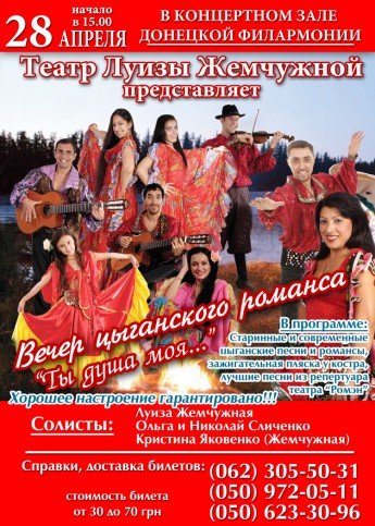 Приглашаем всех на вечер цыганской песни! В программе только самая душевные песни в исполнение солистов Театра Луизы Жемчужной.