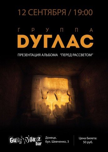 Группа Dуглас основана в Донецке в четвертичном периоде Кайнозойской эры. С этого момента Dуглас непрерывно мутирует и обновляется. Основным критерием творчества группы является безудержная жажда нового и неизвестного, что в значительной мере объясняет стилистическое разнообразие исполняемых песен. Постоянно находясь в андерграунде, музыканты выучились играть при любой погоде и на любом аппарате, не обращать внимание на количество струн и зрителей в зале, а так же игнорировать окружающую действительность и ее мнение о своем творчестве. Потому как действительность изменчива, а творчество - вечно. В данный момент группа Dуглас заканчивает работу над вторым студийным альбомом, материалы которого будут скоро рассекречены.