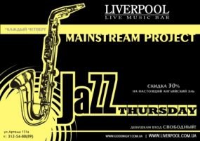Jazz Thursday от Mainstream Project. Скидка 30% на настоящий Английский Эль. Девушкам вход свободный.