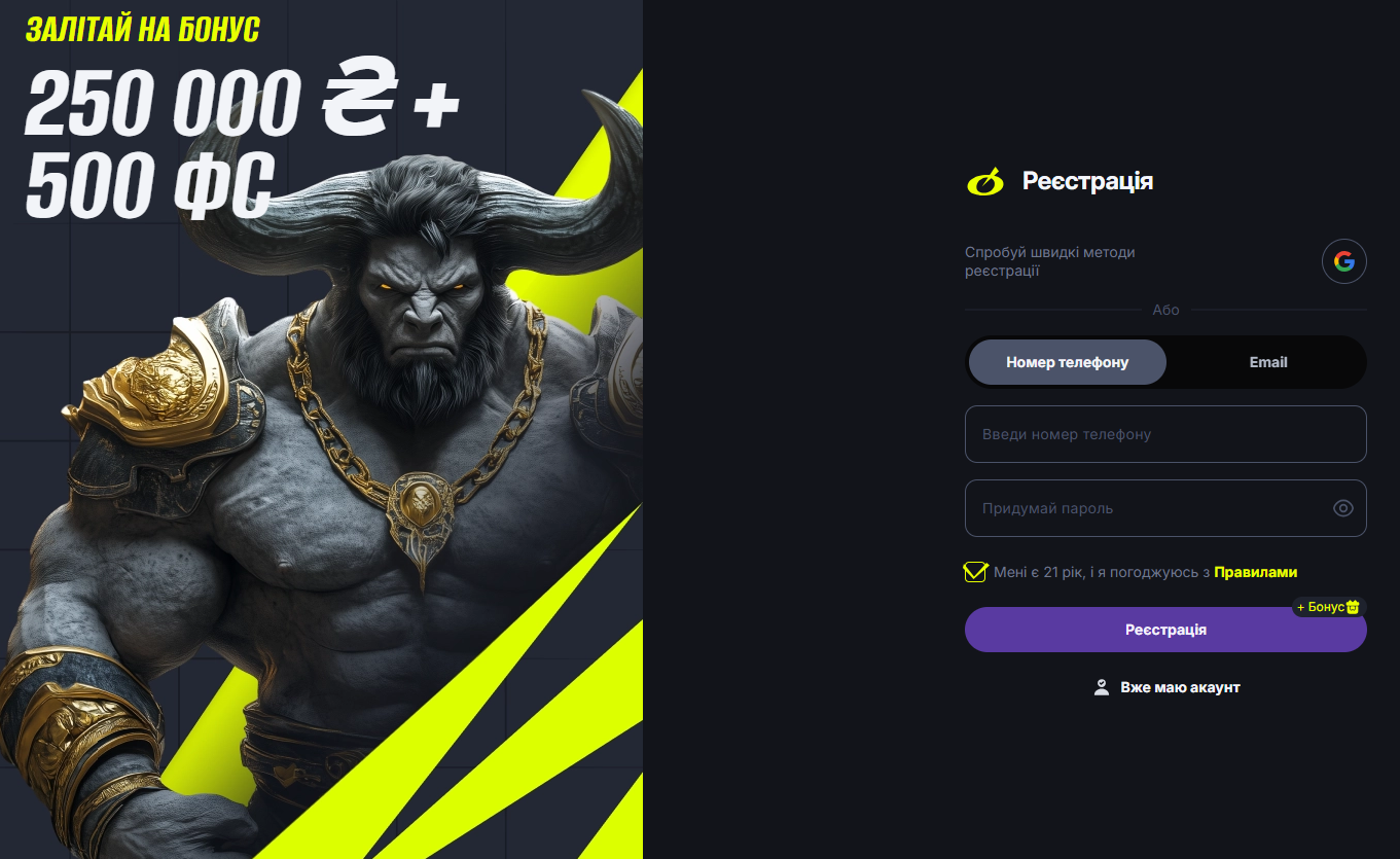 Розважатись в казино на гривні ти можеш й за бонуси. Запускай найкращі ігри та використовуй для ставок бонуси. Розваги за кошти казино неодмінно забезпечать тобі максимум яскравих вражень. А за правилами Welcome Bonus в казино тобі буде нараховано до 250 000 гривень. До того ж, одночасно ти отримаєш в казино 500 фріспінів.