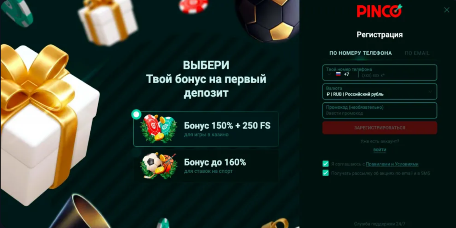 Кто не любит плюшки? В pinco online casino новичкам сразу везет: 150% к первому депозиту до 2,5 миллиона тенге и 250 фриспинов в подарок. Кидаешь 10 000 тенге — получаешь еще 15 000, нормальный расклад! А если ты за спорт, держи бонус до 160% на первый депозит — это прям огонь.
