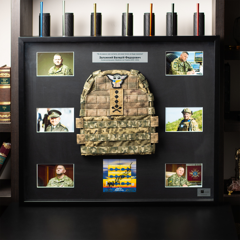 - «залізного генерала» Валерія Залужного — на знаменитих марках від «Укрпошти» у колажі зі світлинами і плитоноскою колишнього Головнокомандувача ЗСУ.