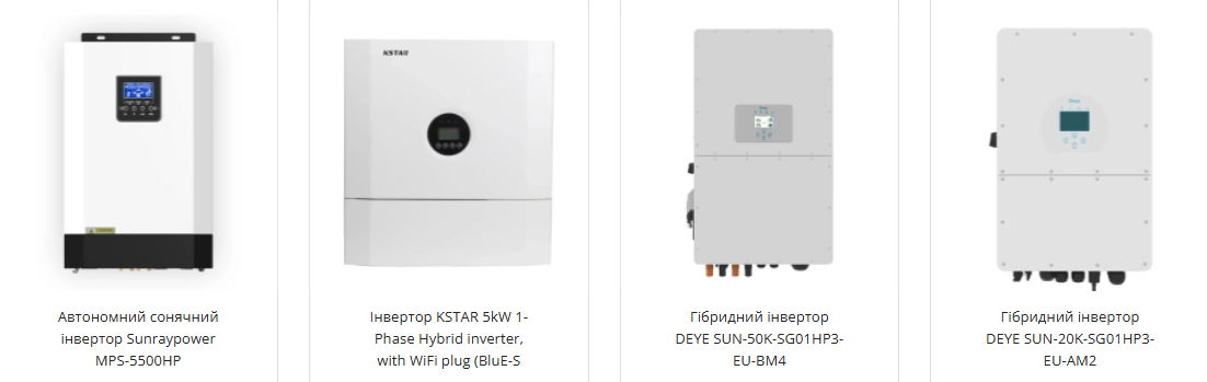 Гібридні інвертори дозволяють поєднувати роботу з мережею, сонячними панелями та акумуляторами, автоматично перемикаючись між джерелами живлення. Автономні рішення підходять для об’єктів без доступу до електромережі або для максимального рівня незалежності. Усі ці варіанти дозволяють підібрати оптимальну конфігурацію без надлишкових витрат.