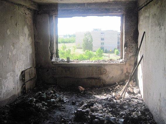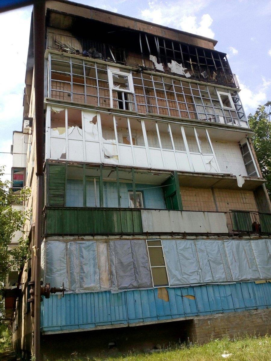 Снаряд боевиков вызвал пожар в многоэтажке в Красногоровке (ФОТО)