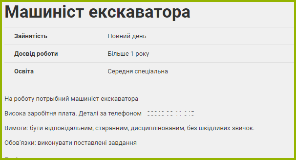 Краткость - сестра таланта. Но не нужно слишком сокращать описание вакансии. Например, на скриншоте ниже явно не хватает информации о зарплате (процент или аренда) и оборудовании.