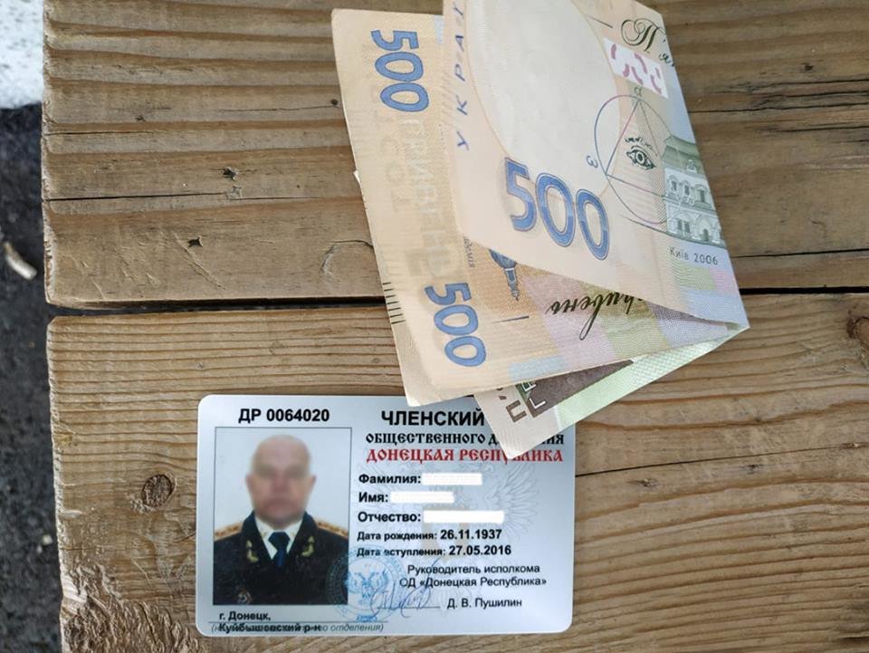 В воскресенье, 22 июля, во время несения службы на КПВВ «Марьинка» сотрудники управления оперативного обеспечения ГУ ГФС в Донецкой области совместно с работниками Государственной пограничной службы Украины из состава Объединенных сил, при осмотре автомобиля Toyota Corolla обнаружили тайник, где находились документы с символикой «ДНР», оформленные на жителя Донецка гражданина К., а именно: служебное удостоверение «Международная национально-патриотическая и спортивно-оборонная организация ДНР «Казачество ДНР», знак качества «Народный контролёр общественного движения «Донецкая республика» и членский билет общественного движения «Донецкая республика».