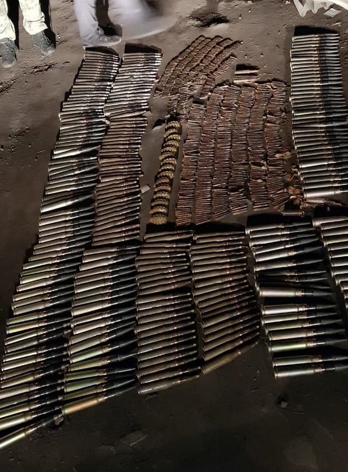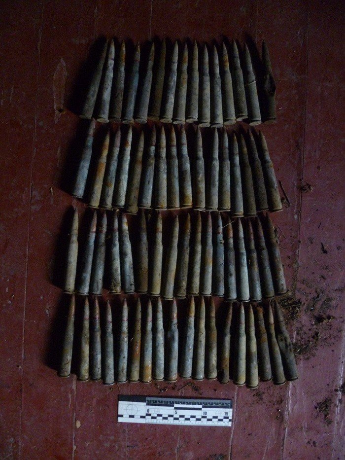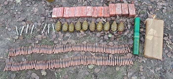 Еще с одной схрона, обустроенного в заброшенном здании в Торецке, оперативники спецслужбы изъяли сто восемьдесят снарядов калибра 30 мм, пятнадцать гранат Ф-1 и более тысячи патронов различного калибра.