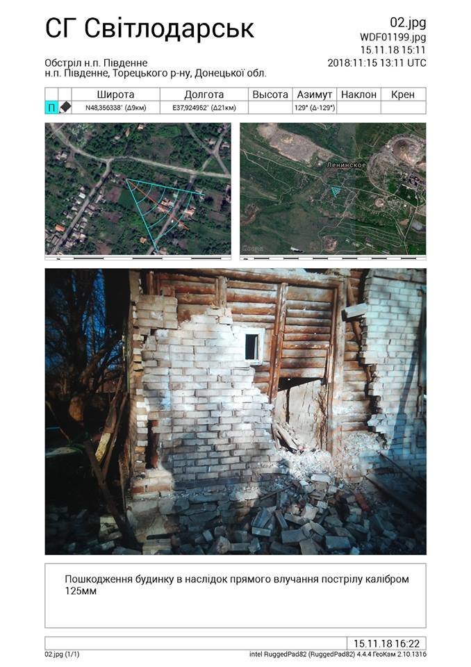 Ночью 15 ноября, под интенсивный огонь, который вели оккупанты из минометов калибра 82 и 120 мм из жилых кварталов Горловки попали жилые дома Южного. Минами калибра 120 мм полностью уничтожены два дома местных жителей.