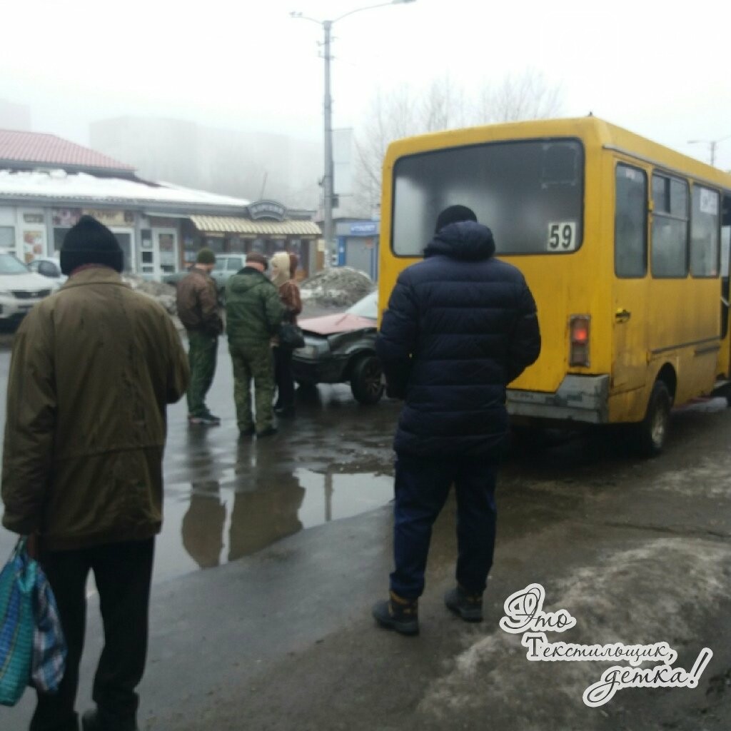Сегодня, 17 февраля, в Кировском районе Донецке на остановке Текстильщик столкнулись маршрутка № 59 с автомобилем «ВАЗ-21099».