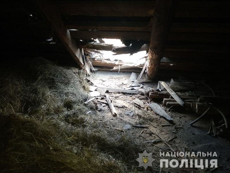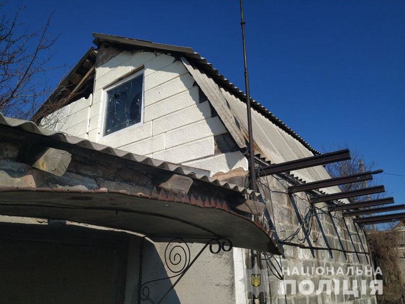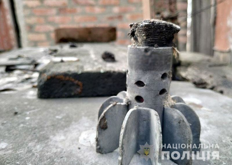 Всего повреждено 3 дома по улице Москалевского. Осколками посечены окна, фасады домов, сельскохозяйственные помещения, гаражи и даже транспортные средства. Полицейские изъяли остатки мин, которые попали во двор.