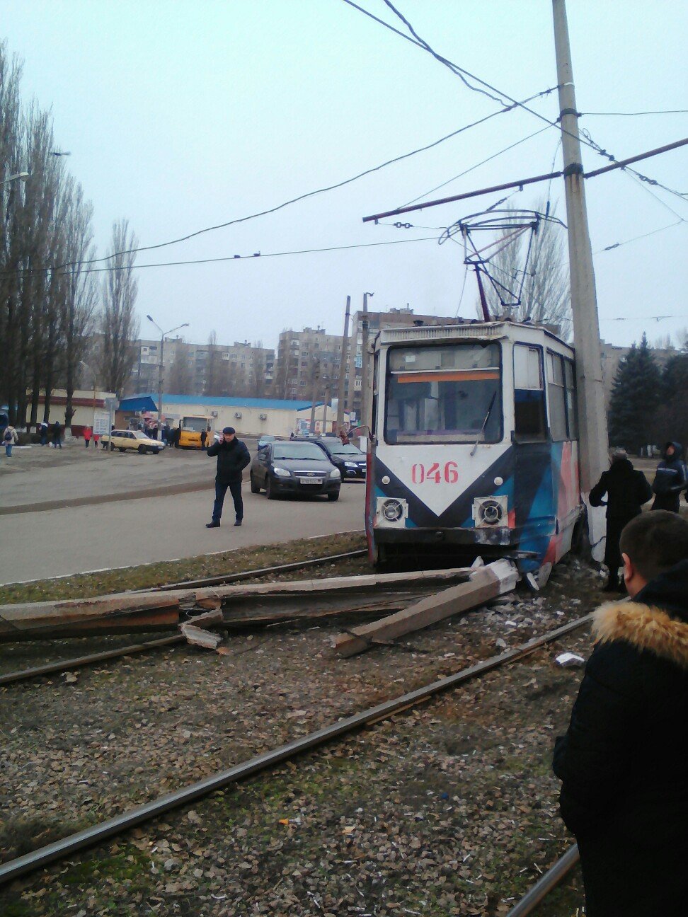 В Енакиево трамвай снес электроопору, - ФОТО