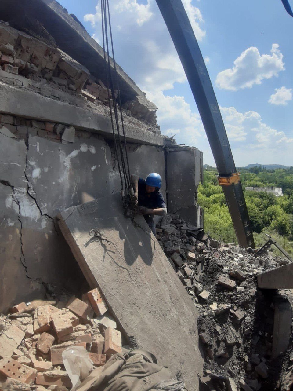 Під час проведення аварійно-рятувальних робіт та пошукових робіт на зруйнованій частині 5-ти поверхового житлового будинку виявлено та вилучено тіла 2-х загиблих осіб ( чоловіка та жінку), інформує ДСНС України.