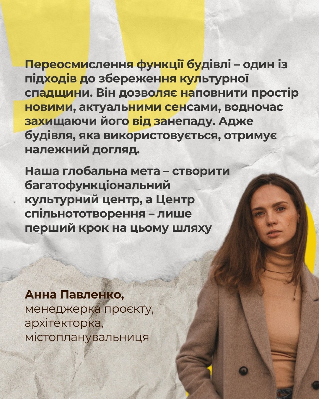 Головне - це буде не просто архітектурний об’єкт — це ще й простір, який об’єднує людей. І ми дуже раді, що можемо допомогти Мошнівський громаді зробити цей крок до розвитку, — підсумовує Анна Павленко.