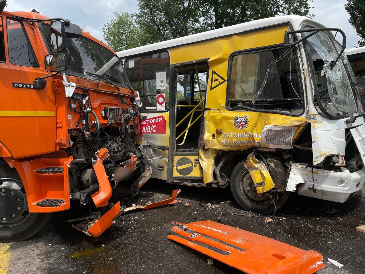 Інцидент трапився на вулиці Університетській. За попередніми даними, водій автобуса рухався виділеною смугою для громадського транспорту, коли на перехресті з вулицею Орешкова водій вантажівки КамАЗ, виїжджаючи з другорядної дороги, не надав маршрутці перевагу в русі. У результаті сталося зіткнення, повідомляє так зване «мвс днр».