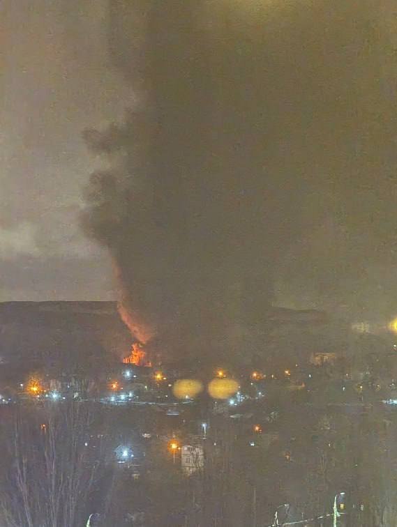 Також у місті виникла пожежа. Попередньо після влучання в район тютюнової фабрики у Будьонівському районі міста. В цьому ж районі розташована електрична підстанція.