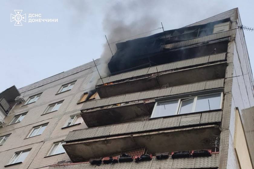 У Дружківці російський FPV-дрон влучив у дев’ятиповерховий житловий будинок. Удар припав на балкон квартири на 8-му поверсі, внаслідок чого спалахнула пожежа.