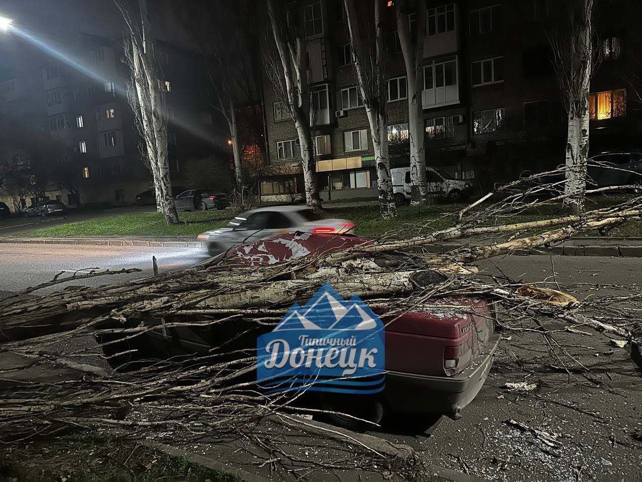 В Донецке одно дерево сокрушило авто, а второе оборвало электропровода, - ФОТО